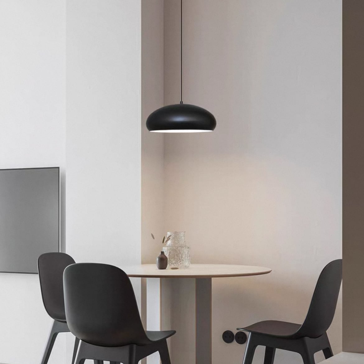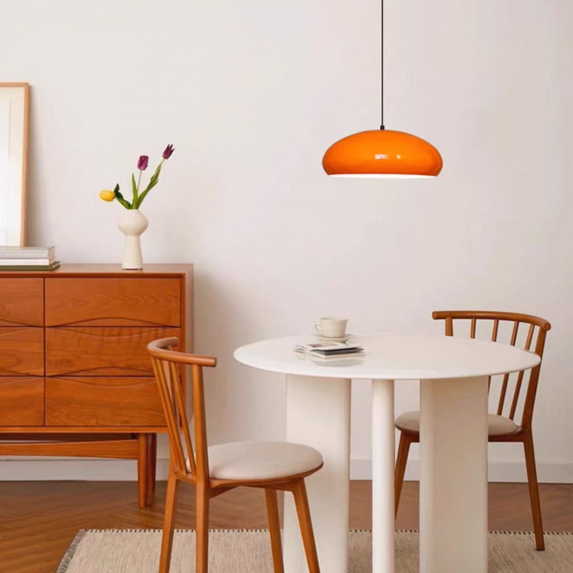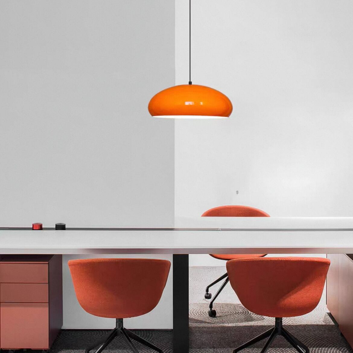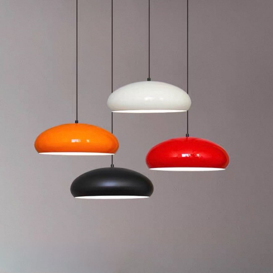 艶やかなドーム型シェードは、点灯時には柔らかな光を空間に広げ、消灯時にも建築的なフォルムとして存在感を放ちます。ホワイトやブラックは洗練された静謐を、オレンジやレッドは空間にアクセントと温もりを添え、どのカラーもインテリアに自然に溶け込みながら上質な雰囲気を演出します。