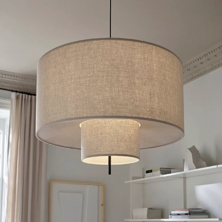 上質なリネン素材が生み出す、やわらかな光。自然素材ならではの風合いを活かした、リネンシェードのペンダントライト。シェードの縁取りをあえて排したミニマルなデザインにより、布本来の美しい質感とすっきりとしたフォルムを引き立てています。