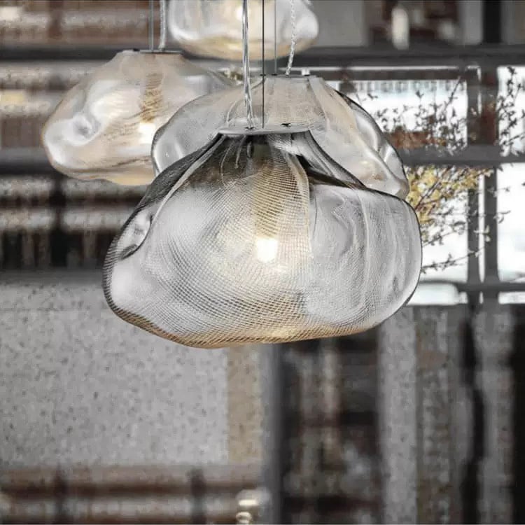 透明感あふれる吹きガラスが、まるで“空気を閉じ込めた”ように柔らかなフォルムを描くペンダントライト。