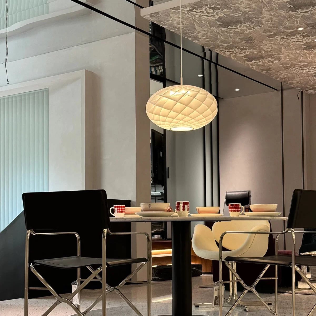 光と影のリズムをデザインしたアートピースのような照明です。
